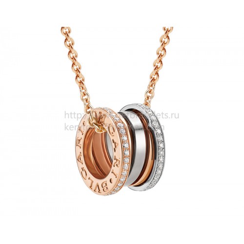 Collana Bvlgari B.zero1 Labirinto con pendente in oro rosa e bianco con pavé di diamanti