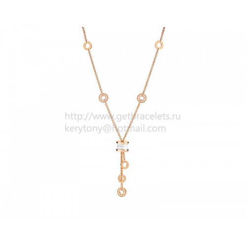 Collana Bvlgari B.zero1 in oro rosa con ceramica bianca e pavé di diamanti