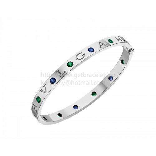 Bracciale rigido BVLGARI BVLGARI in oro bianco con 6 zaffiri blu e 6 tsavoriti
