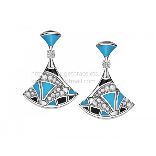Orecchini Bvlgari DIVAS Dream in oro bianco con onice turchese e pavé di diamanti