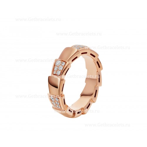 Anello a fascia BVLGARI Serpenti Viper medio in oro rosa 18 carati con diamanti demi-pavé