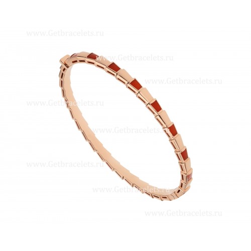 Bracciale rigido sottile Bvlgari Serpenti Viper in oro rosa 18 carati con elementi in corniola