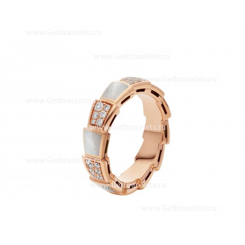 Anello Bvlgari Serpenti Viper medio in oro rosa 18 carati con elementi in madreperla e pavé di diamanti