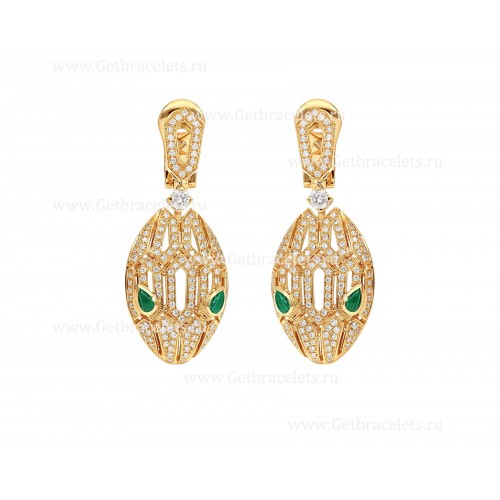 • Orecchini Bvlgari Serpenti in oro giallo 18 carati con pavé di diamanti e occhi di malachite