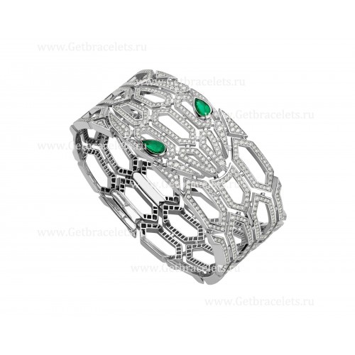 Bracciale rigido Bvlgari Serpenti in oro bianco 18 carati con occhi di smeraldo e pavé di diamanti