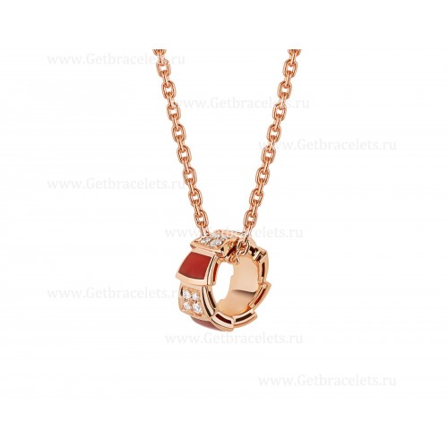 Collana Bvlgari Serpenti Viper in oro rosa 18 carati con elementi in corniola e pavé di diamanti sul pendente