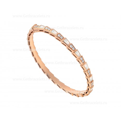 Bracciale sottile Bvlgari Serpenti Viper in oro rosa 18 carati con elementi in madreperla e pavé di diamanti