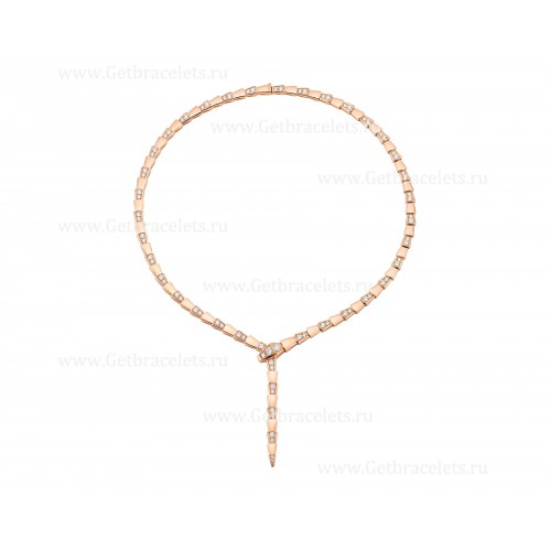 Collana sottile Bvlgari Serpenti Viper in oro rosa 18 carati con pavé di diamanti