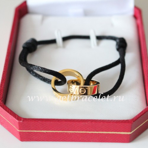 Bracciale Love doppio anello Cartier Corda nera in oro giallo