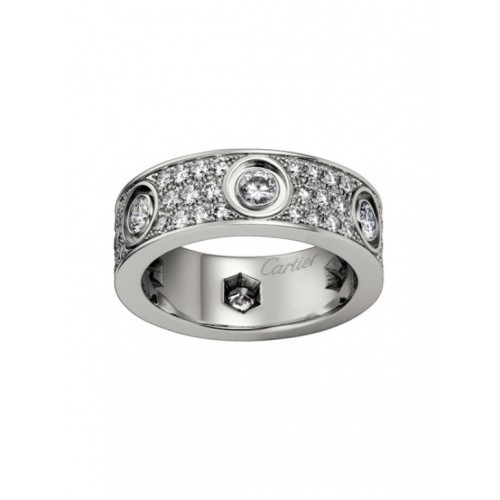 Anello Love Cartier in oro bianco 18 carati con pavé di diamanti con 6 grandi diamanti