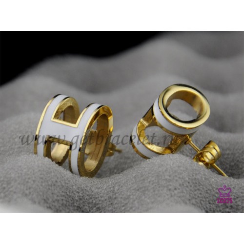 Orecchini Hermes Pop H bianchi in oro giallo