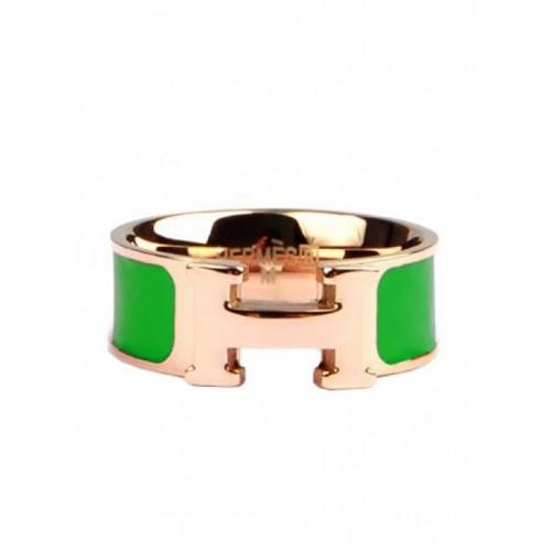 Anello Hermes Clic H smaltato in oro rosa 18kt con verde