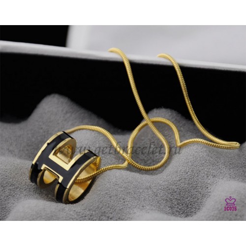 Hermes 3D Pop “H” logo Collana nera con osso di serpente in oro giallo