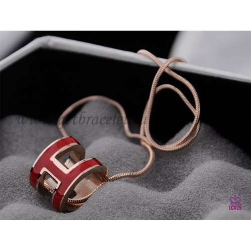 Hermes 3D Pop “H” logo Collana rossa con osso di serpente in oro rosa