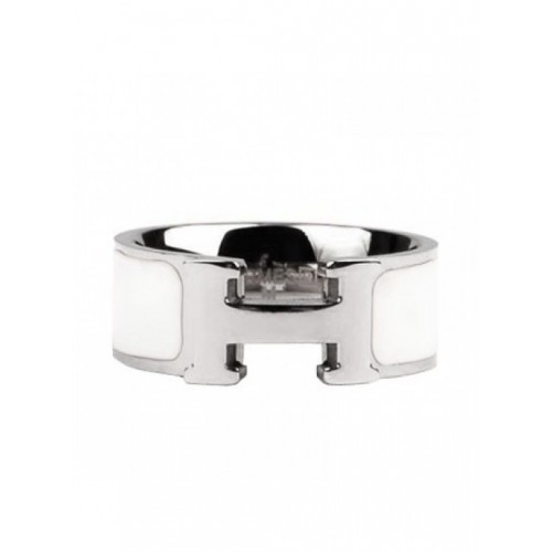 Anello Hermes Clic H smaltato in oro bianco 18kt con bianco