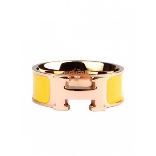 Anello Hermes Clic H smaltato in oro giallo 18kt con giallo