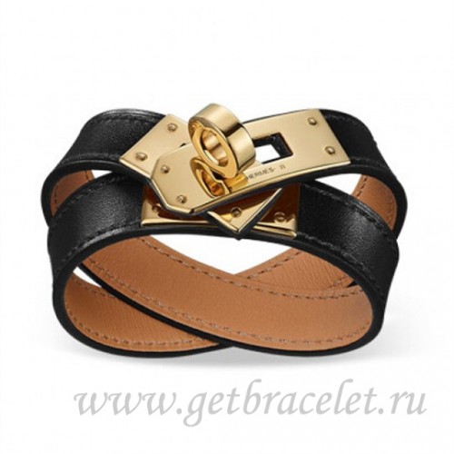Bracciale Hermes Rivale a doppio giro nero con oro