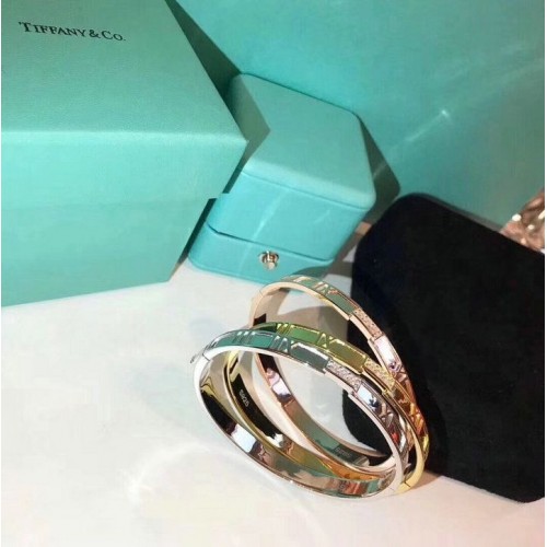 • Bracciale rigido da donna Tiffany Atlas chiuso a cerniera in argento rosa/oro giallo con cristalli
