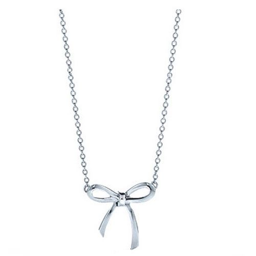 Collana con ciondolo clavicola con pendente Bowknot in oro bianco con fiocco Tiffany imitazione