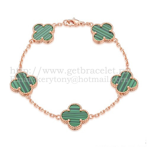 Bracciale Van Cleef Arpels Alhambra 5 motivi in oro rosa con madreperla malachite
