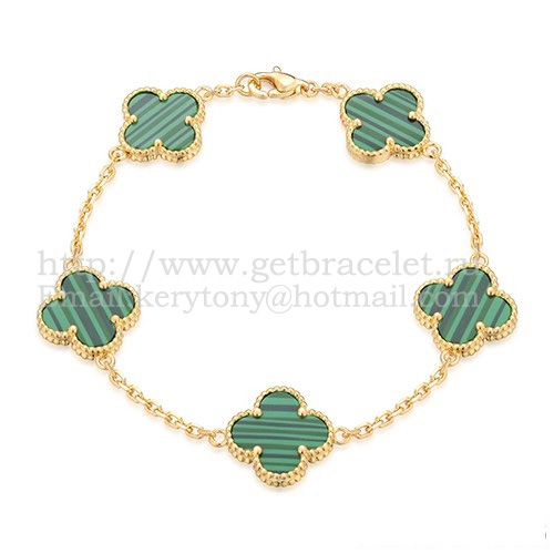 Bracciale Van Cleef Arpels Alhambra 5 motivi in oro giallo con madreperla malachite