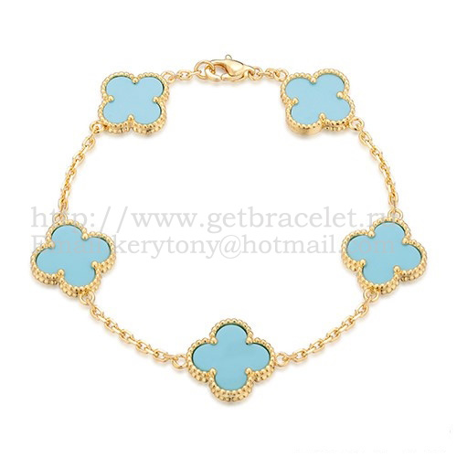 • Bracciale Van Cleef Arpels Alhambra 5 motivi in oro giallo con madreperla turchese