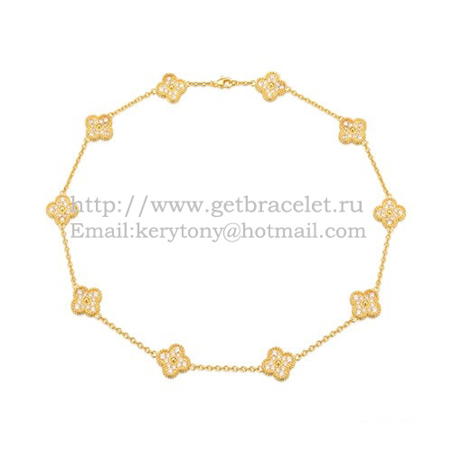 Collana lunga Van Cleef Arpels Alhambra in oro giallo 10 motivi con pavé di diamanti