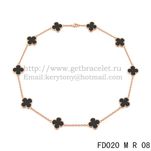 Van Cleef Arpels Alhambra Collana Oro rosa 10 motivi Agata nera Madreperla 45 cm