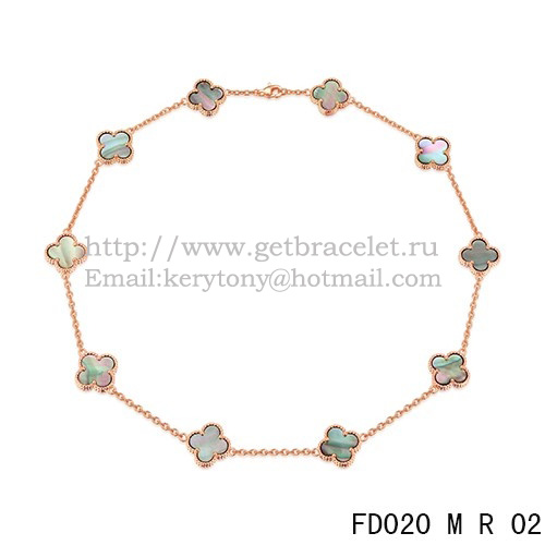 Collana Van Cleef Arpels Alhambra Oro rosa 10 motivi Madreperla grigia 45 cm