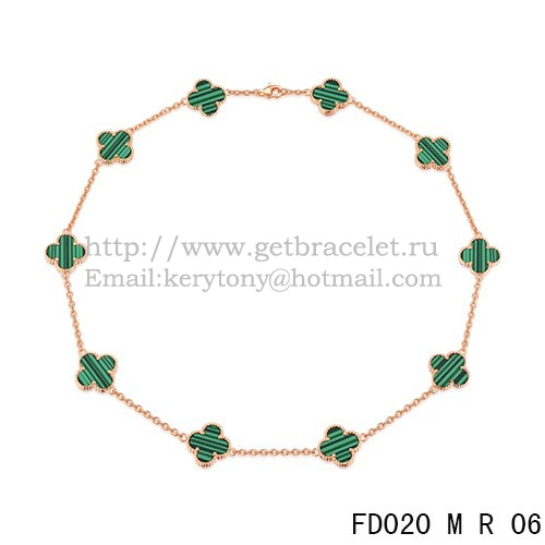 Van Cleef Arpels Alhambra Collana Oro rosa 10 motivi Malachite Madreperla 45 cm