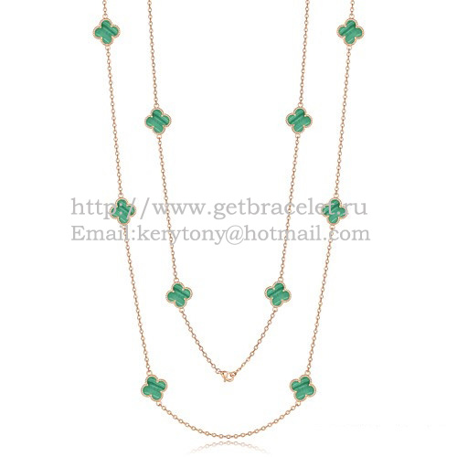 Collana Van Cleef Arpels Alhambra in oro rosa 10 motivi con madreperla malachite