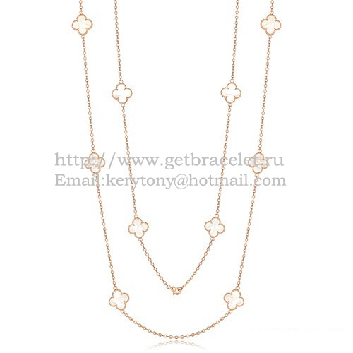 Collana Van Cleef Arpels Alhambra in oro rosa 10 motivi con madreperla bianca