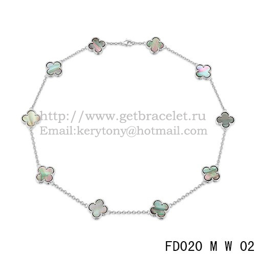 Collana Van Cleef Arpels Alhambra Oro bianco 10 motivi Madreperla grigia 45 cm