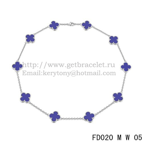 Van Cleef Arpels Alhambra Collana Oro bianco 10 motivi Lapislazzuli Madreperla 45 cm