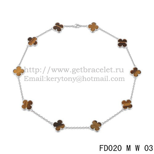 Van Cleef Arpels Alhambra Collana Oro bianco 10 motivi Occhio di tigre Madreperla 45 cm