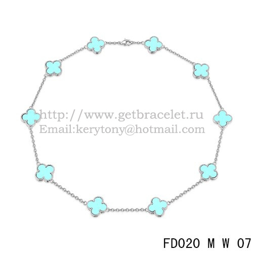 Van Cleef Arpels Alhambra Collana Oro bianco 10 motivi Turchese Madreperla 45 cm