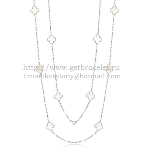Collana Van Cleef Arpels Alhambra in oro bianco 10 motivi con madreperla bianca