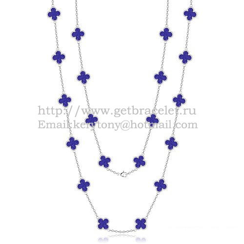Collana Van Cleef Arpels Alhambra in oro bianco 20 motivi con pietra di lapislazzuli, madreperla