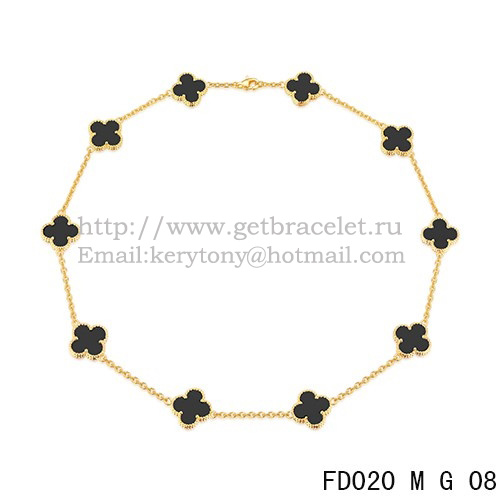 Van Cleef Arpels Alhambra Collana Oro giallo 10 motivi Agata nera Madreperla 45 cm