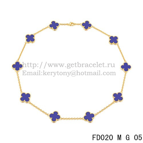 Van Cleef Arpels Alhambra Collana Oro giallo 10 motivi Lapislazzuli Madreperla 45 cm