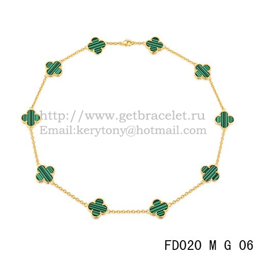 Van Cleef Arpels Alhambra Collana Oro giallo 10 motivi Malachite Madreperla 45 cm