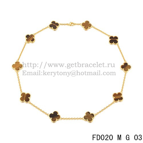 Van Cleef Arpels Alhambra Collana Oro giallo 10 motivi Occhio di tigre Madreperla 45 cm