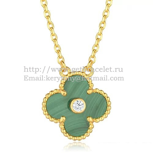 Ciondolo Alhambra di Van Cleef Arpels in oro giallo con diamanti rotondi in madreperla e malachite