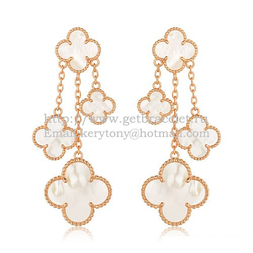 Orecchini Van Cleef Arpels Magic Alhambra a 4 motivi in oro rosa con madreperla bianca