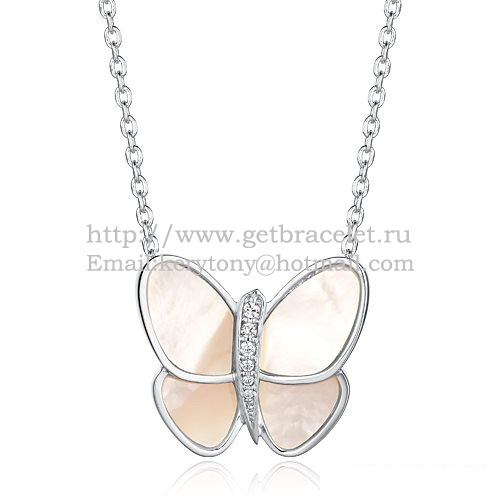 Collana con pendente a farfalla volante di Van Cleef Arpels in oro bianco con diamanti bianchi in madreperla