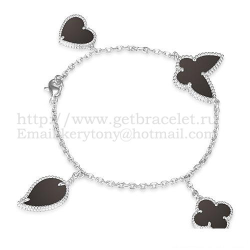 Bracciale Van Cleef Arpels Lucky Alhambra a 4 motivi in oro bianco con combinazione di pietre 007