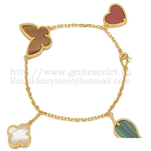Bracciale Van Cleef Arpels Lucky Alhambra a 4 motivi in oro giallo con combinazione di pietre 003