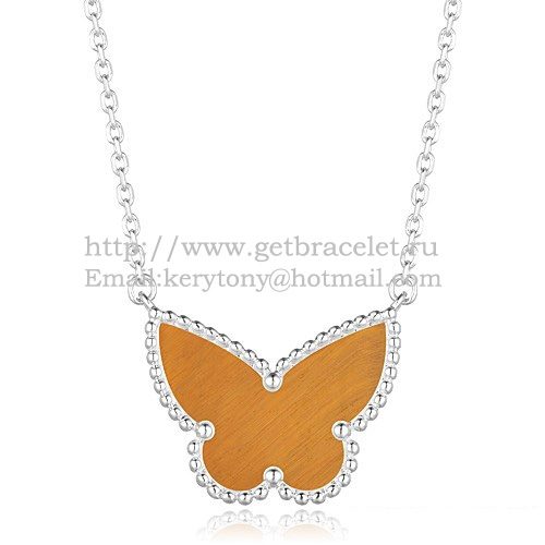 Ciondolo farfalla Van Cleef Arpels Lucky Alhambra in oro bianco con occhio di tigre in madreperla