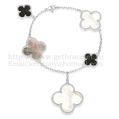 Van Cleef Arpels Magic Alhambra Bracciale 5 motivi Oro bianco con madreperla bianca grigia Agata nera
