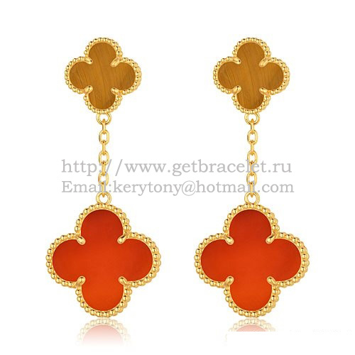 Orecchini Van Cleef Arpels Magic Alhambra in oro giallo con corniola occhio di tigre